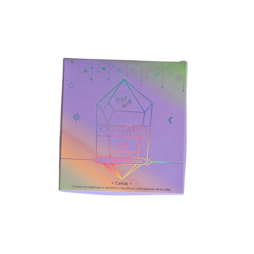 50 cartas, cada una con un término energético o espiritual, un mensaje, un mantra o afirmación positiva para reprogramación mental y el cristal que te ayudará a equilibrar esa área de tu vida.